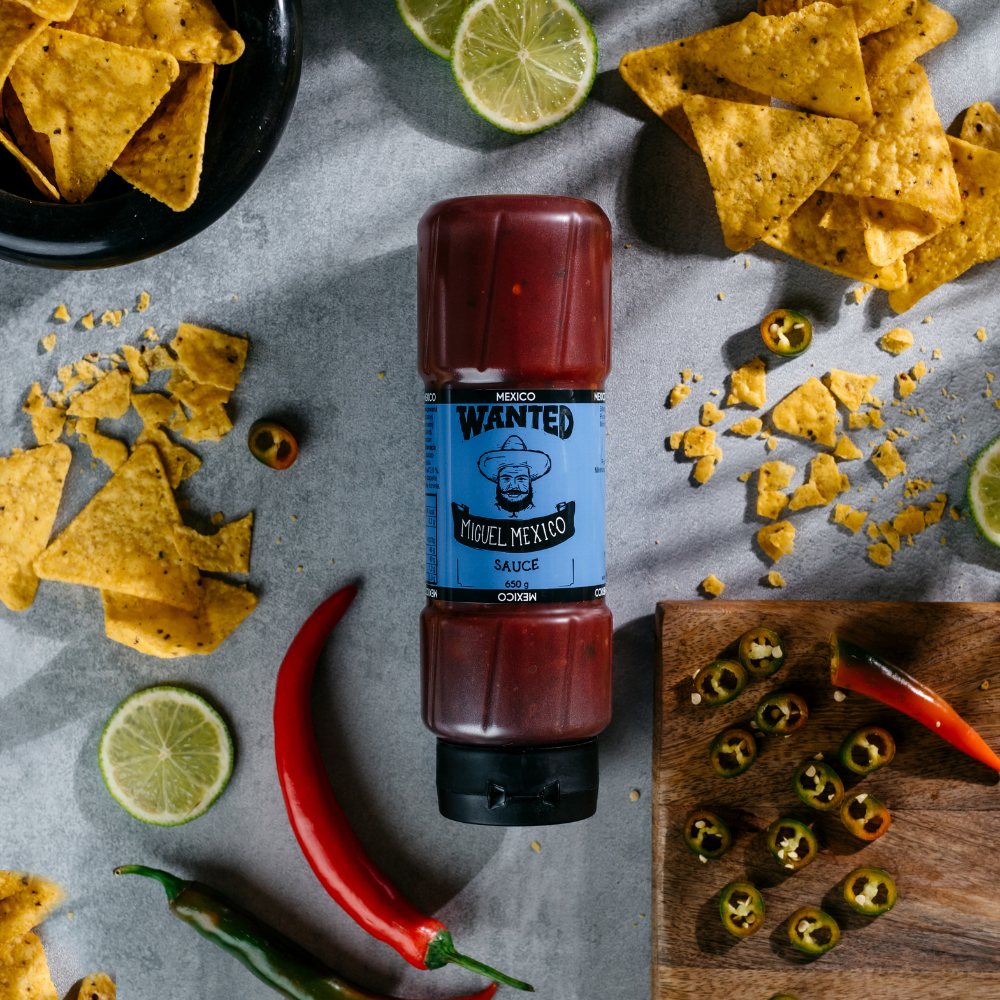 Omáčka Miguela Mexico je nejostřejší z celé WANTED bandy. Navíc se spojila s lahodnou zeleninou a kořením, aby si společně podmanily všechny milovníky ostřejších jídel. Doslova pálí chilli papričkami, aby dosáhla příjemné štiplavosti v ústech.