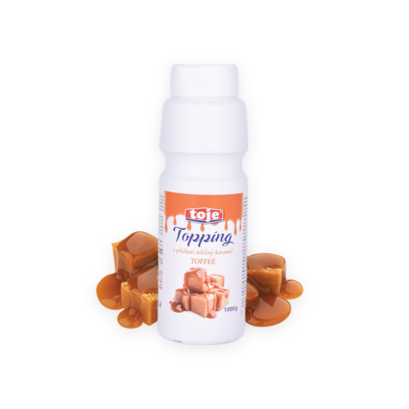Topping toffee caramel je lahodná polotekutá poleva české výroby. Perfektně se hodí do ovocných a zmrzlinových pohárů, rýžových nákypů, mléčných koktejlů, zmrzlin, palačinek a dalších sladkých pochoutek. Díky své bohaté a krémové struktuře a karamelové chuti podtrhne chuť pečiva, krémové zmrzliny nebo ovoce.